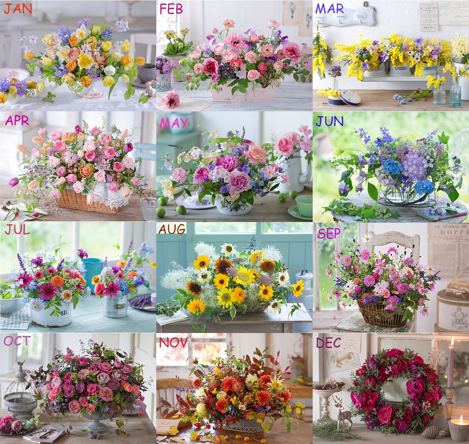フラワーアーティスト落合惠美&フォトグラファー落合里美のユニット撮影によるフラワーカレンダーは多くのファンに20年以上支持され続け、毎年人気の定番商品です!